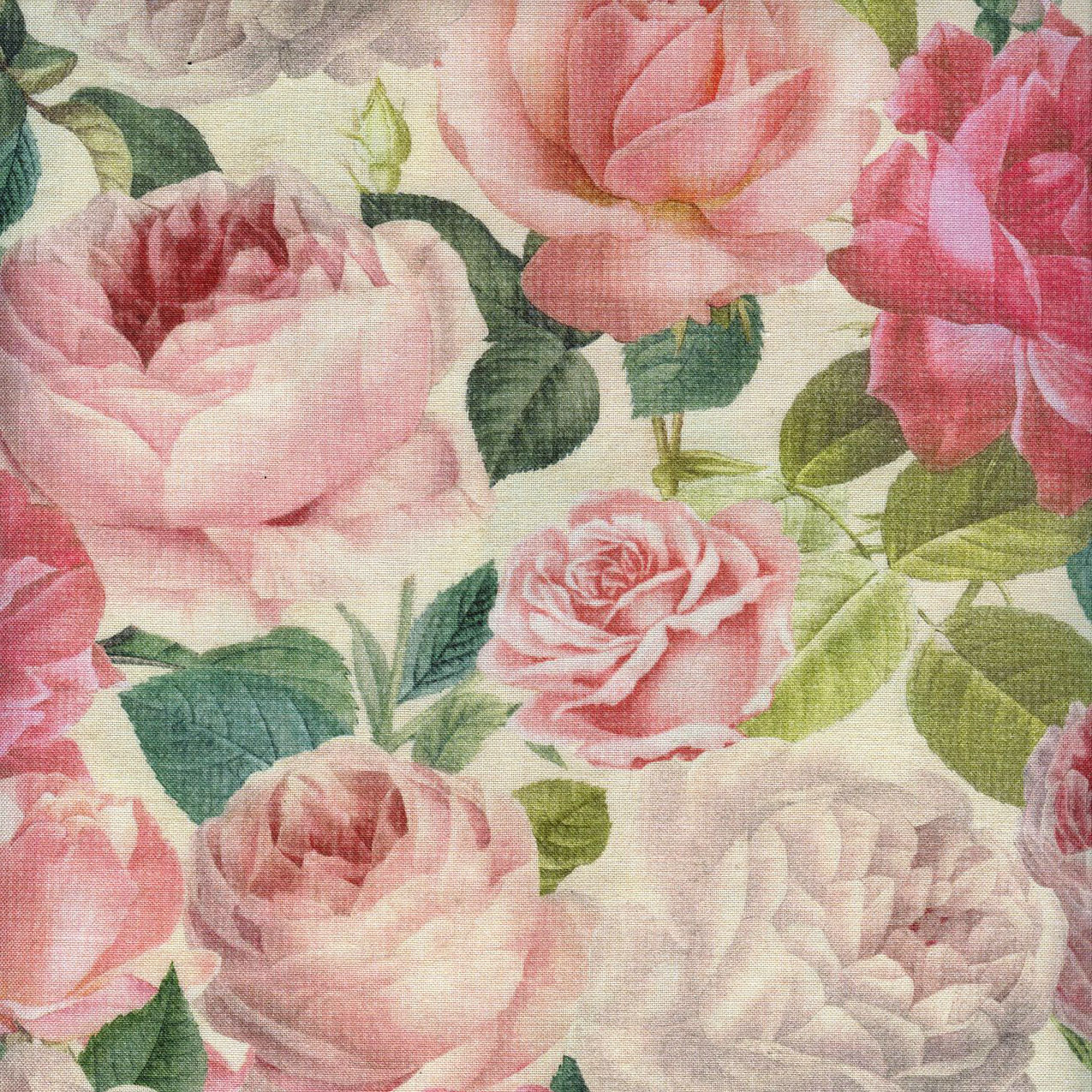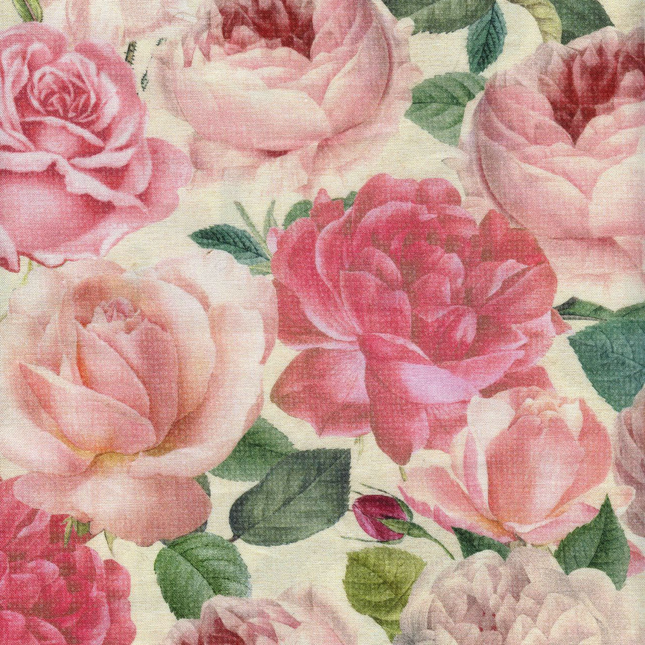 This beautiful digital garden rose fabric on Cream is a large overall print that would make a wonderful quilt back or a large block, and the weight is also heavy enough for other home decorating projects like cushion covers, wall hangings, custom drapes, as well as clothing.